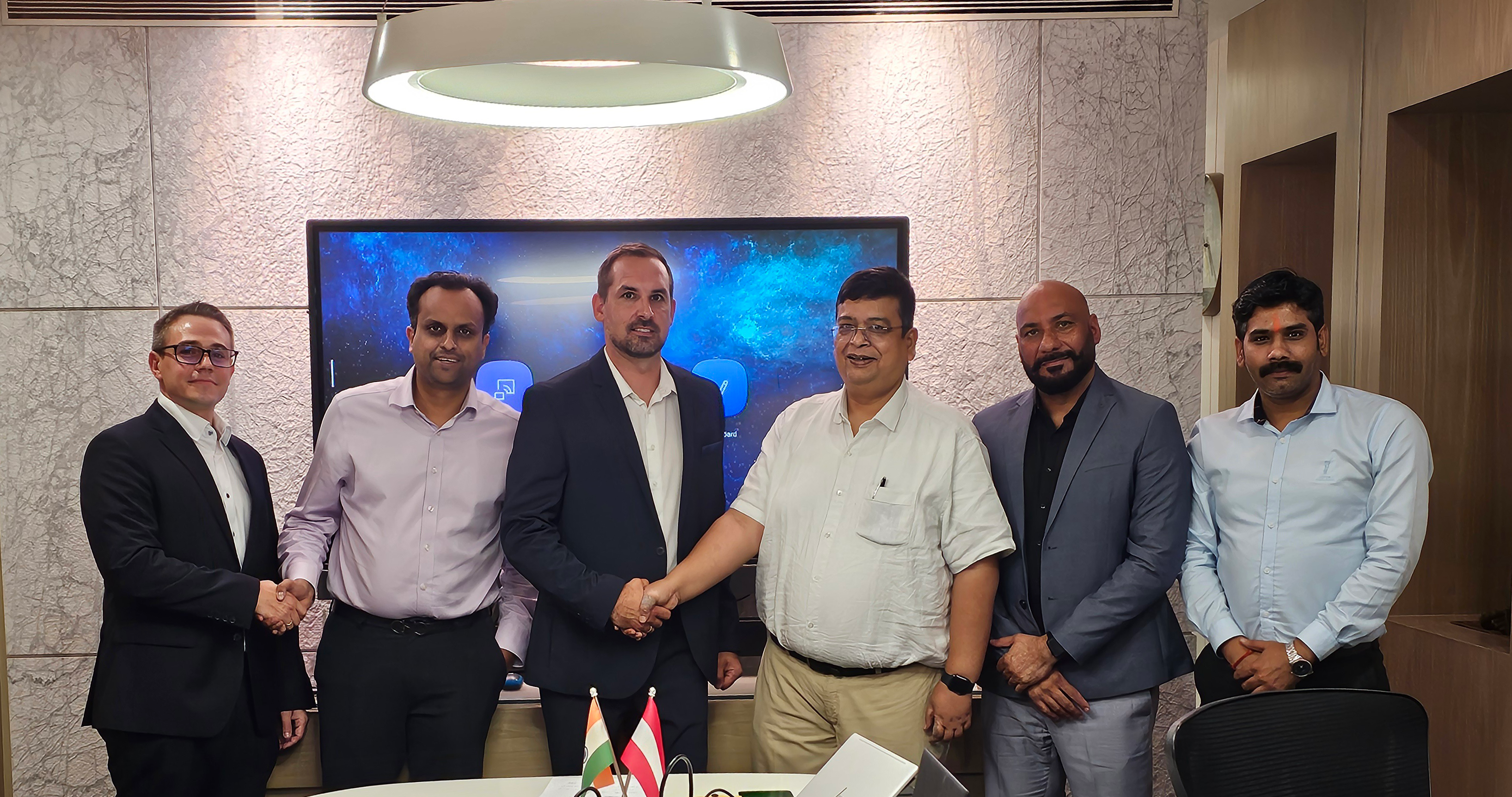 Vertreter von Elixrr und ANDRITZ bei der Auftragsvergabe. Elixrr steigt mit einem Druckzerfaserungssystem von ANDRITZ in den MDF-Sektor ein – es ist das zehnte System, das ANDRITZ nach Indien liefert.