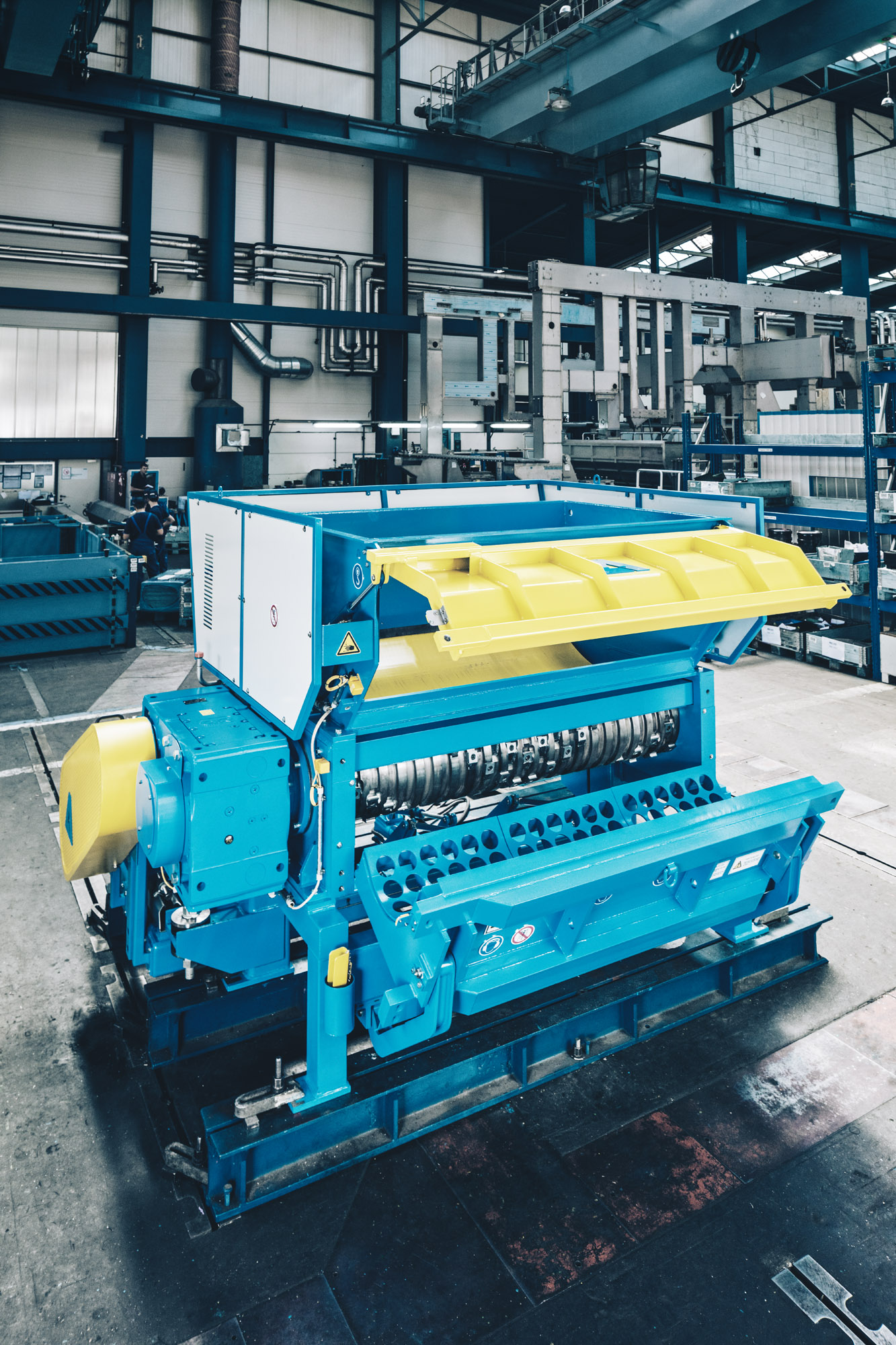 Der neue FRP-Shredder, Typ 2000P, wird zur Zerkleinerung der Reststoffe aus dem Produktionsprozess eingesetzt und ist in der Lage, bis zu vier Tonnen Holzreste pro Stunde zu verarbeiten. Eine spezielle Schneidtechnologie ist erforderlich, um dieses sehr massive und harte Holzlaminat zu bearbeiten. Der Universal Shredder FRP verfügt über ein sogenanntes CoverCross-System mit überlappenden Messern. Damit ist die Maschine die perfekte Wahl, um diese Herausforderung zu meistern, und stellt das gleichmäßige Zerkleinern des Eingangsmaterials sicher. Der Rotor dreht sich dabei kontinuierlich, um so einen hohen Durchsatz bei maximaler Effizienz zu gewährleisten. Der Eintragstrichter ist ebenso Teil des Lieferumfangs.