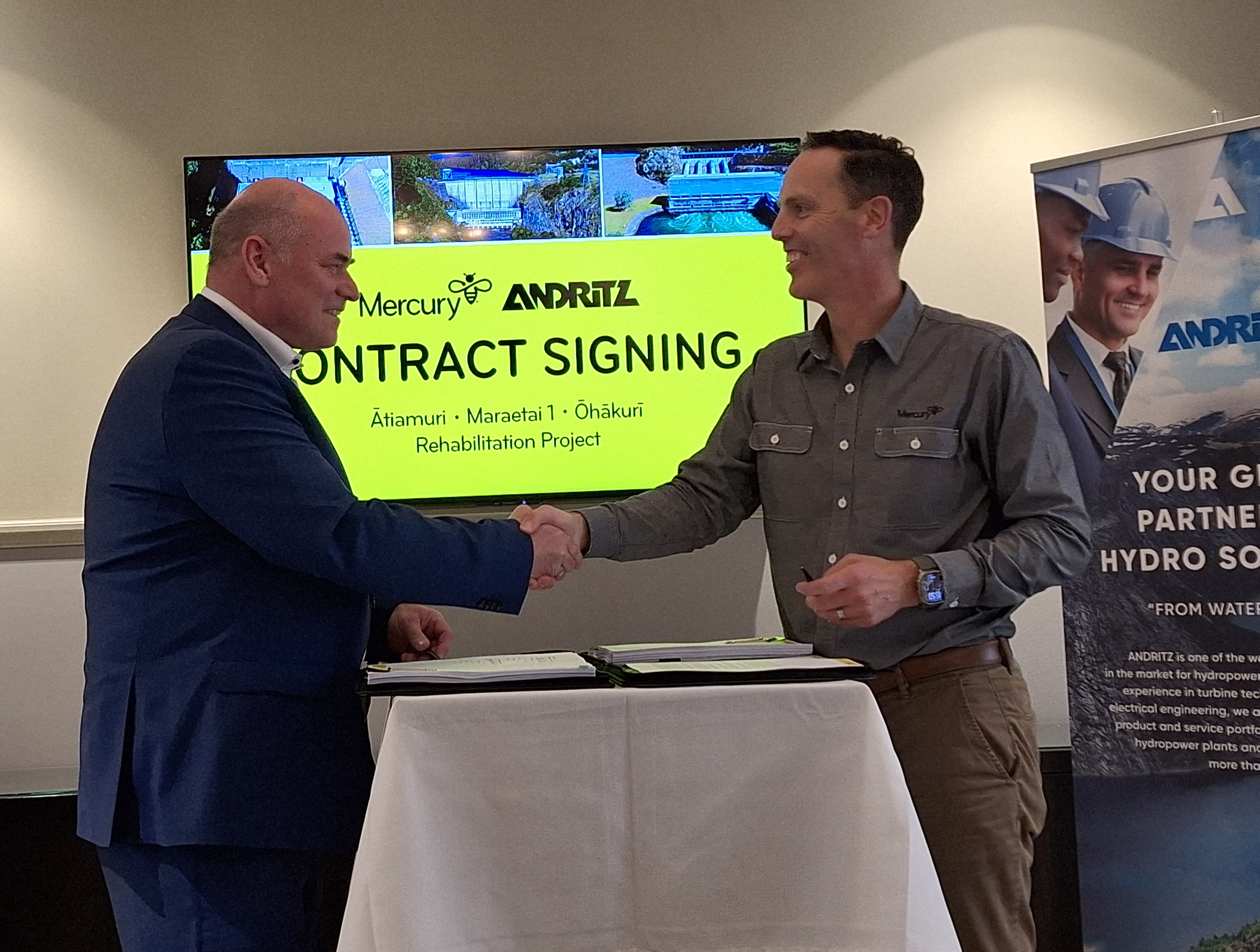 Anton Schindele, Vice President Service & Rehab, ANDRITZ Hydropower and Stewart Hamilton, Chief Executive, Mercury NZ
