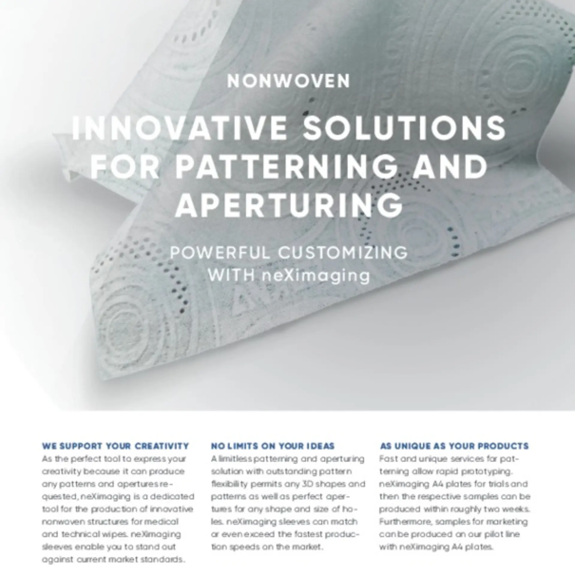 ANDRITZ neXimaging is the embossing and patterning option that uses hydroentanglement. You can also add fine graphic content, so there are basically no limits to the design of your product. ANDRITZ neXimaging is best used for spunlace products, especially for all types of wipes.