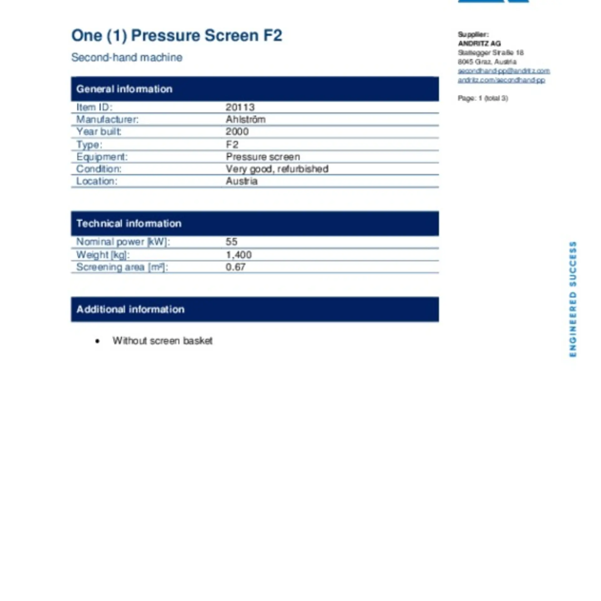 Pressure Screen F2