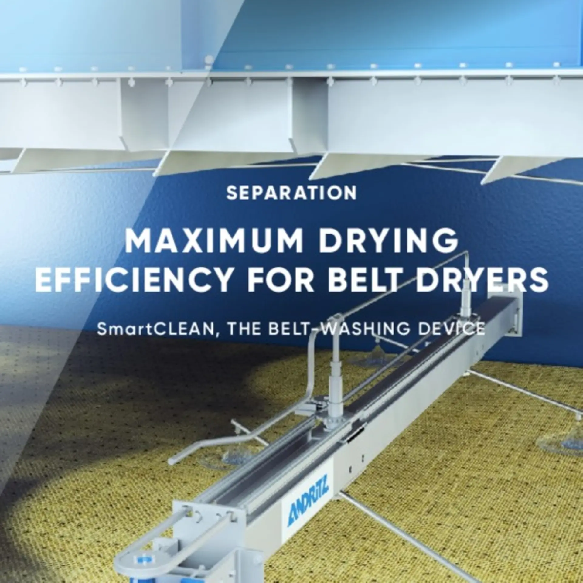 SmartCLEAN is an innovative belt-washing device for belt dryers that maximizes drying efficiency. The improved rotating design allows optimum cleaning with minimal use of high-pressure water. SmartCLEAN guarantees stable product quality over the whole belt width.