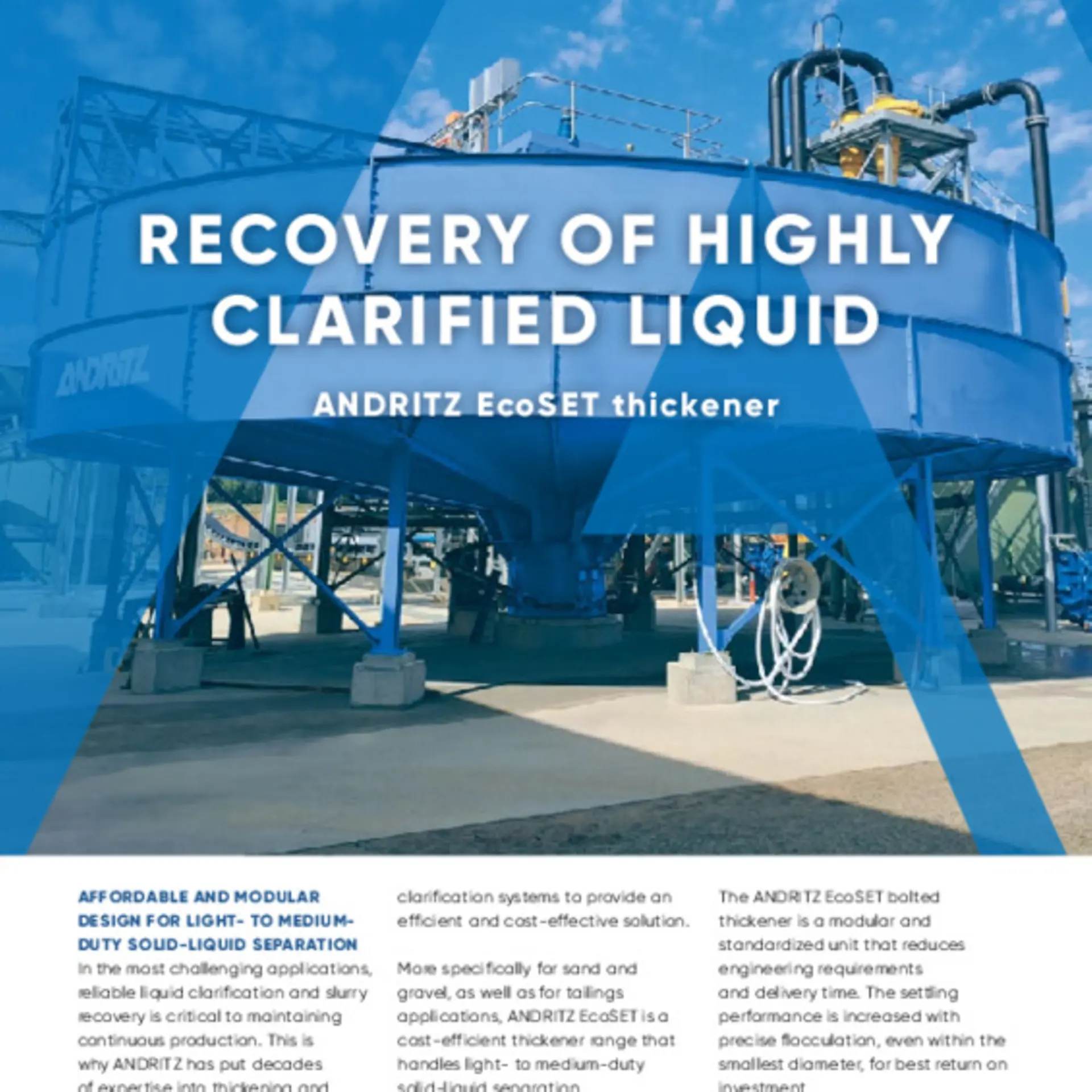 In the most challenging applications, reliable liquid clarification and slurry recovery is critical to maintaining continuous production. This is why ANDRITZ has put decades of expertise into thickening and clarification systems to provide an efficient and cost-effective solution.