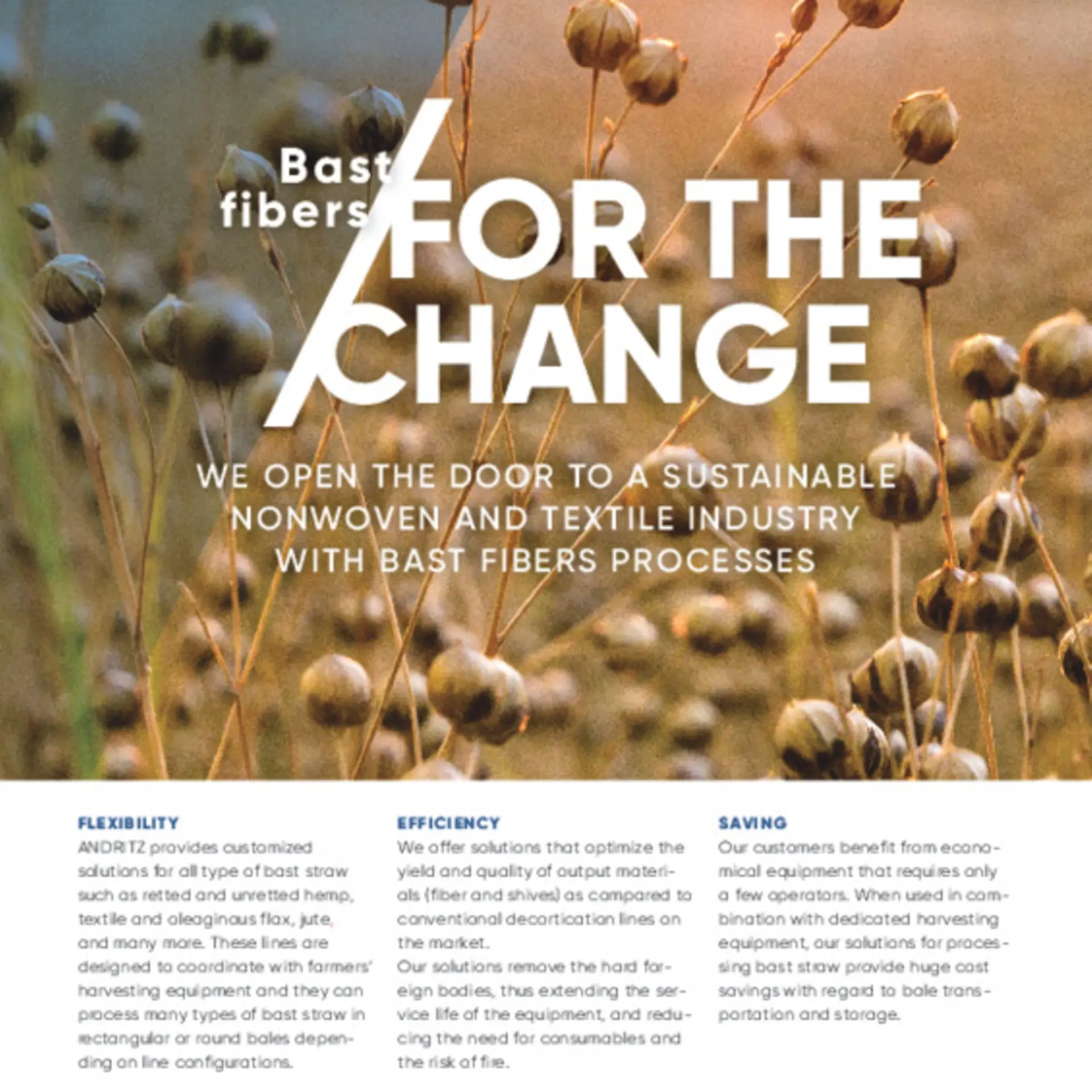 ANDRITZ bast fiber technology can process numerous natural fibers, such as hemp, kenaf, jute, or flax.