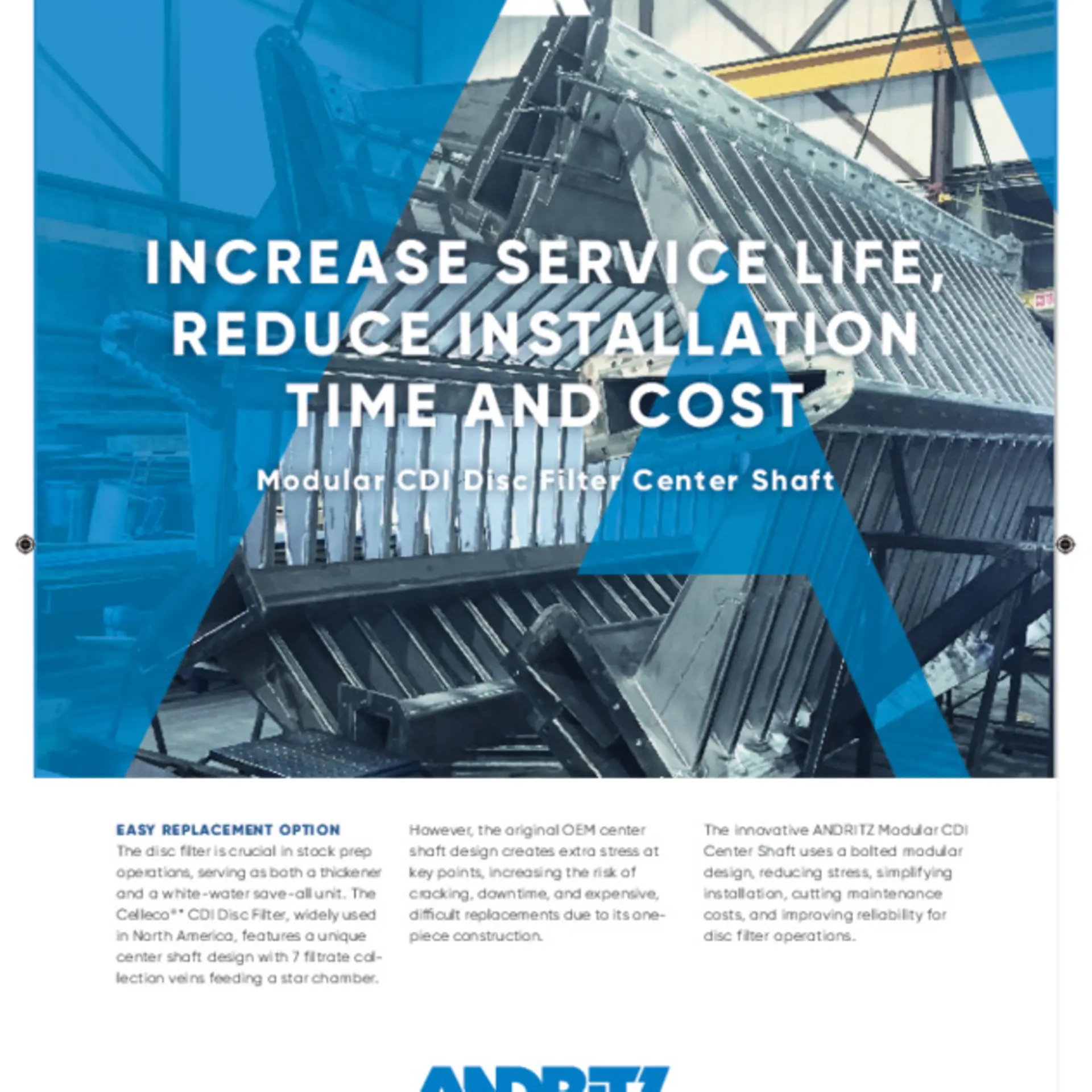 - Center shaft: ANDRITZ design to achieve higher throughput combined with minimum flow losses.