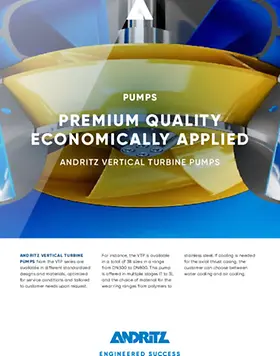 ANDRITZ vertical line shaft pumps, VLSP series, can installed for a wide range of different industrial processes. They are used in water transport for irrigation and drainage as well as drinking and industrial water supply. Additionally, these pumps can also function as cooling water pumps or flue gas desulphurization pumps for power stations. Finally, ANDRITZ vertical line shaft pumps from the VLSP series are used as seawater intake pumps for desalination plants.