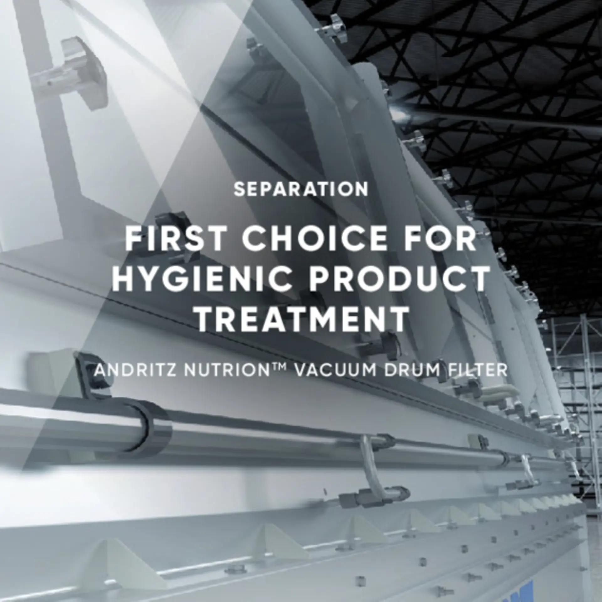 Product contamination, manual cleaning, or unplannd downtimes? These are all things you would prefer to do without to ensure the purity of your end-product and the efficiency of your process, aren't they? By using the new ANDRITZ NutrionTM vacuum drum filter, you will achieve a better-quality end product, have less cleaning work to do, increase the safety of your operators, and obtain greater process availability. Suitable for many food and chemical applications, ANDRITZ NutrionTM is bringing vacuum filtration to the highest hygienic levels.