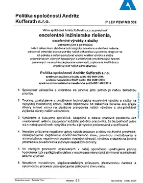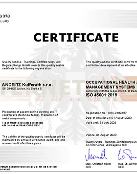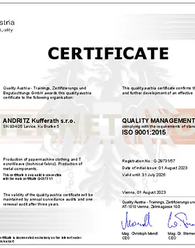 ANDRITZ Kufferath s.r.o. Levice poskytuje vysoko kvalitné produkty, efektívny servis a profesionálnu pracovnú spoluprácu s cieľom zabezpečiť spokojnosť zákazníkov.