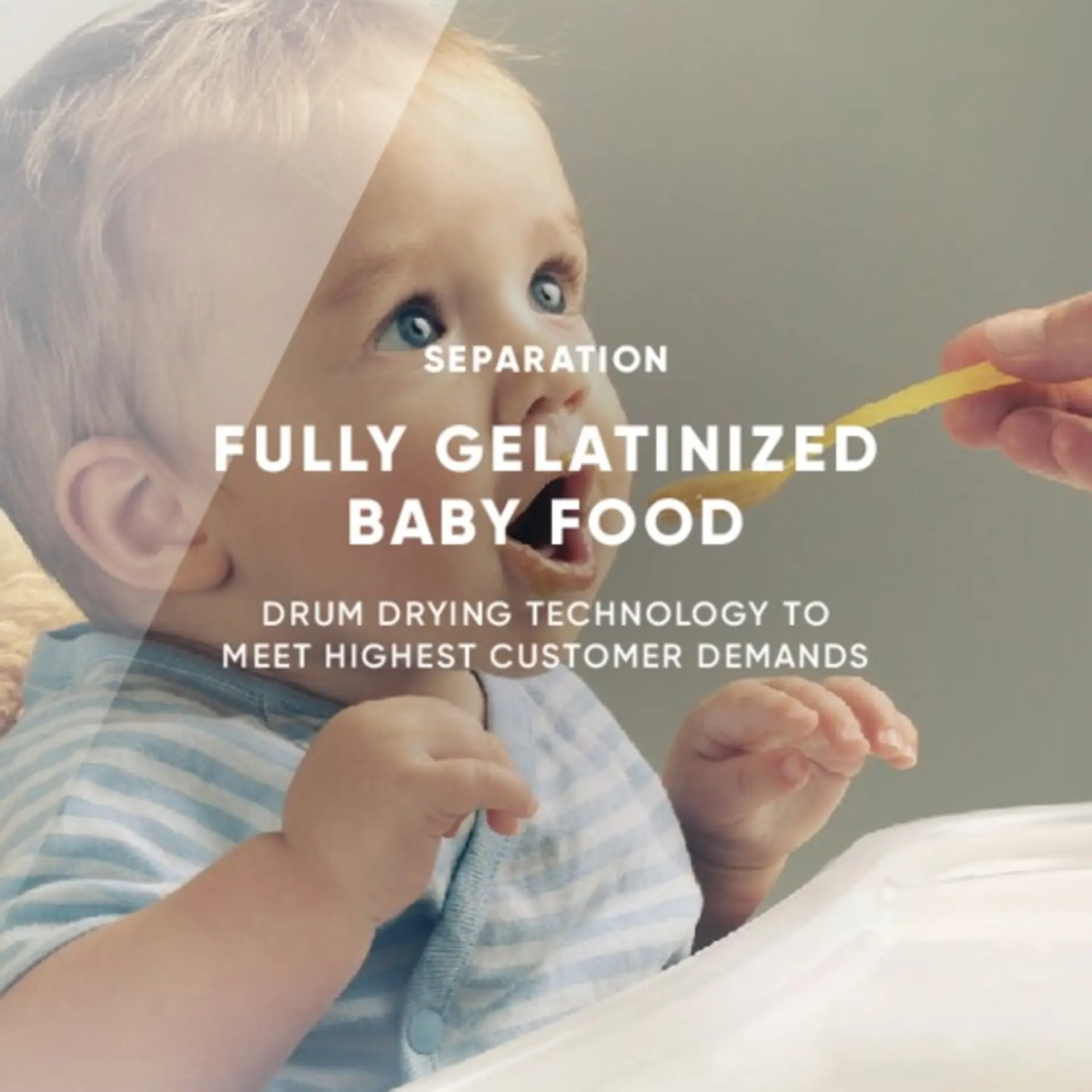 In the food industry, we are well known for our proprietary drum drying technology for dried baby food. It’s a technology known for the unique taste, full gelatinization, and consistent quality of its end products. Over the years we’ve raised the benchmark even further, continuously optimizing our machines to set new hygiene standards and developing new process solutions to meet specific customer challenges. From our “kitchen” in Waddinxveen in the Netherlands, we can test baby food and cereal applications or even optimize your recipes to produce the roasting effect, bulk density, or film thickness your products demand.