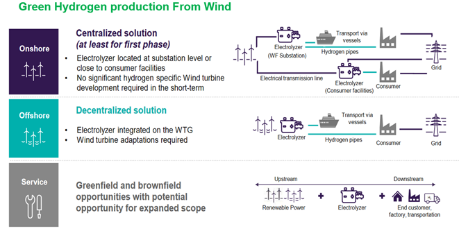 If green hydrogen is to become a significant source of energy for industrial purposes, then it is quite possible that wind power and solar systems in remote locations will be dedicated to electrolyzing systems producing hydrogen which can then be shipped or piped to industrial users. Some of the infrastructure for transferring the hydrogen could be repurposed from that which is currently moving natural gas.