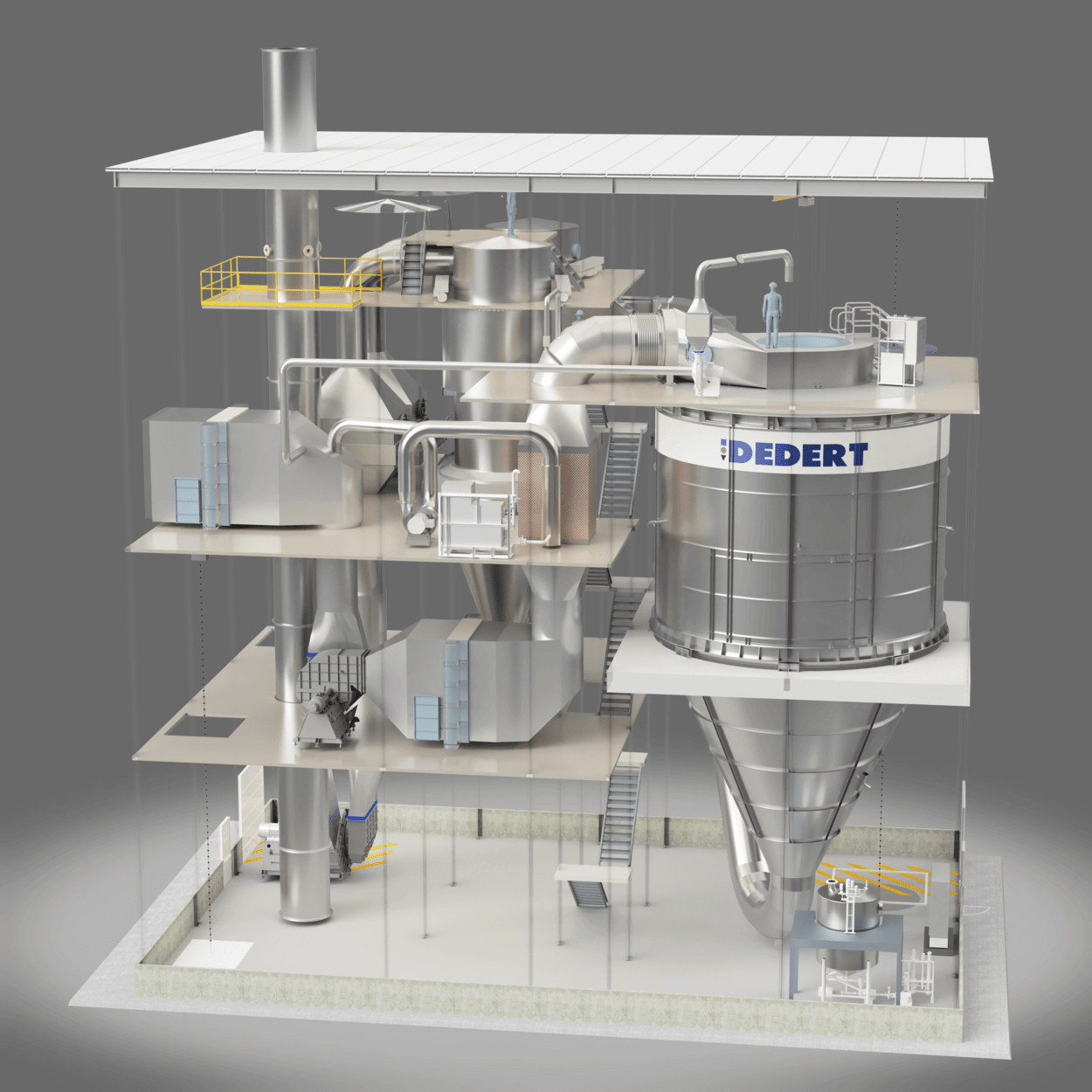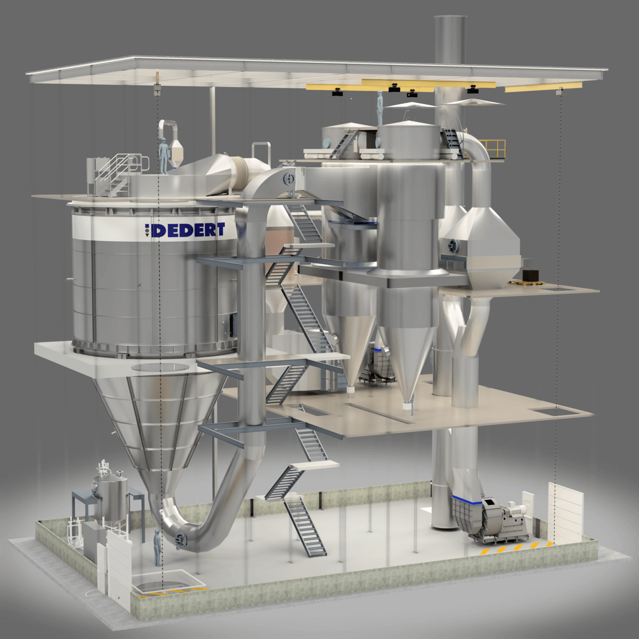 Spray drying requires high energy usage, and Dedert understands energy efficiency concerns when it comes to spray drying lithium-based feeds. As such, Dedert incorporates energy optimization and integration as part of our drying solution. One example is the use of waste heat and flue gases from other parts of the drying process. Another example is exhaust heat energy recovery.