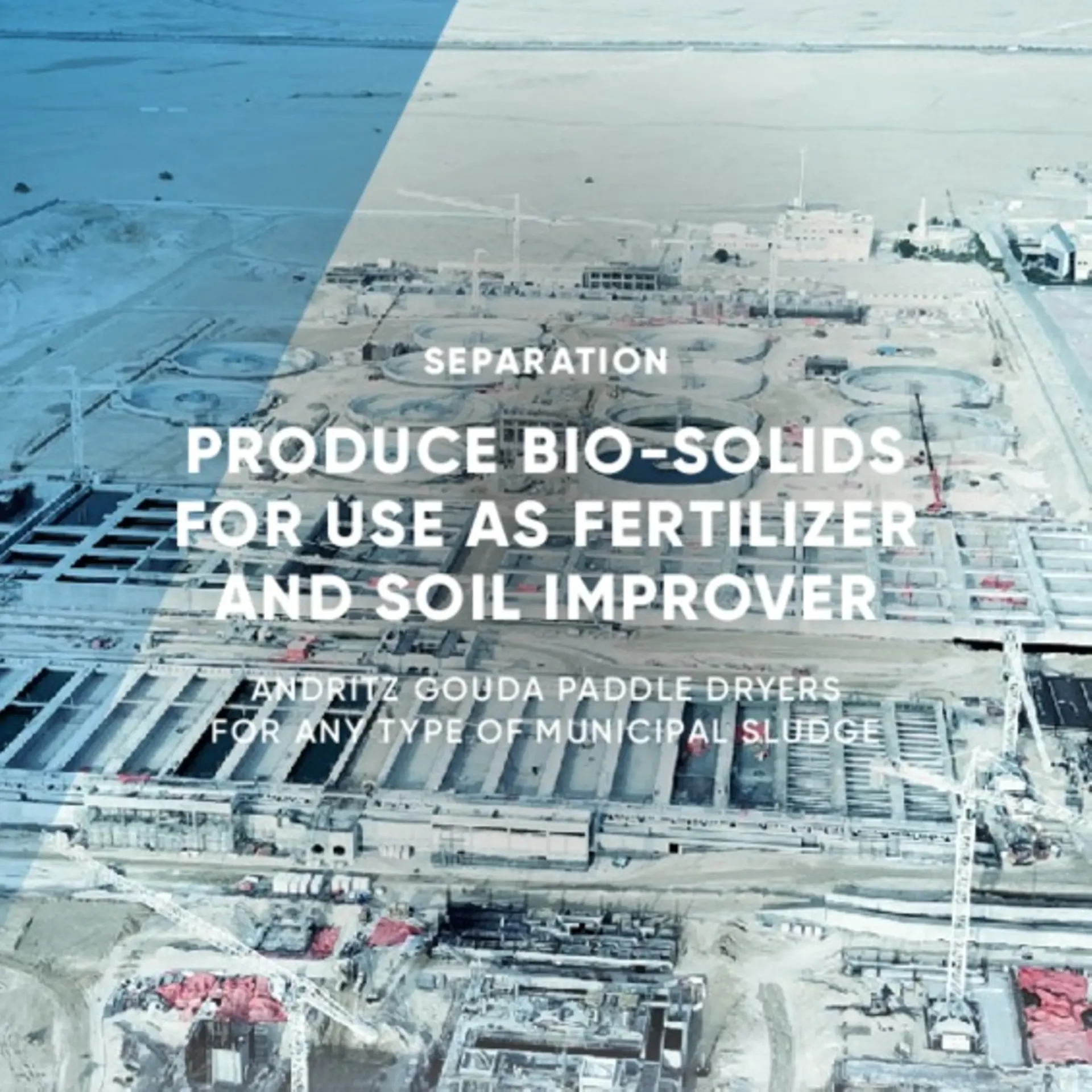 Each of the three paddle dryers will be able to dry 5.6 tons per hour of dewatered sludge, from 22% DS to 92% DS. The entire drying plant is designed to handle 453 tons of sludge per day.