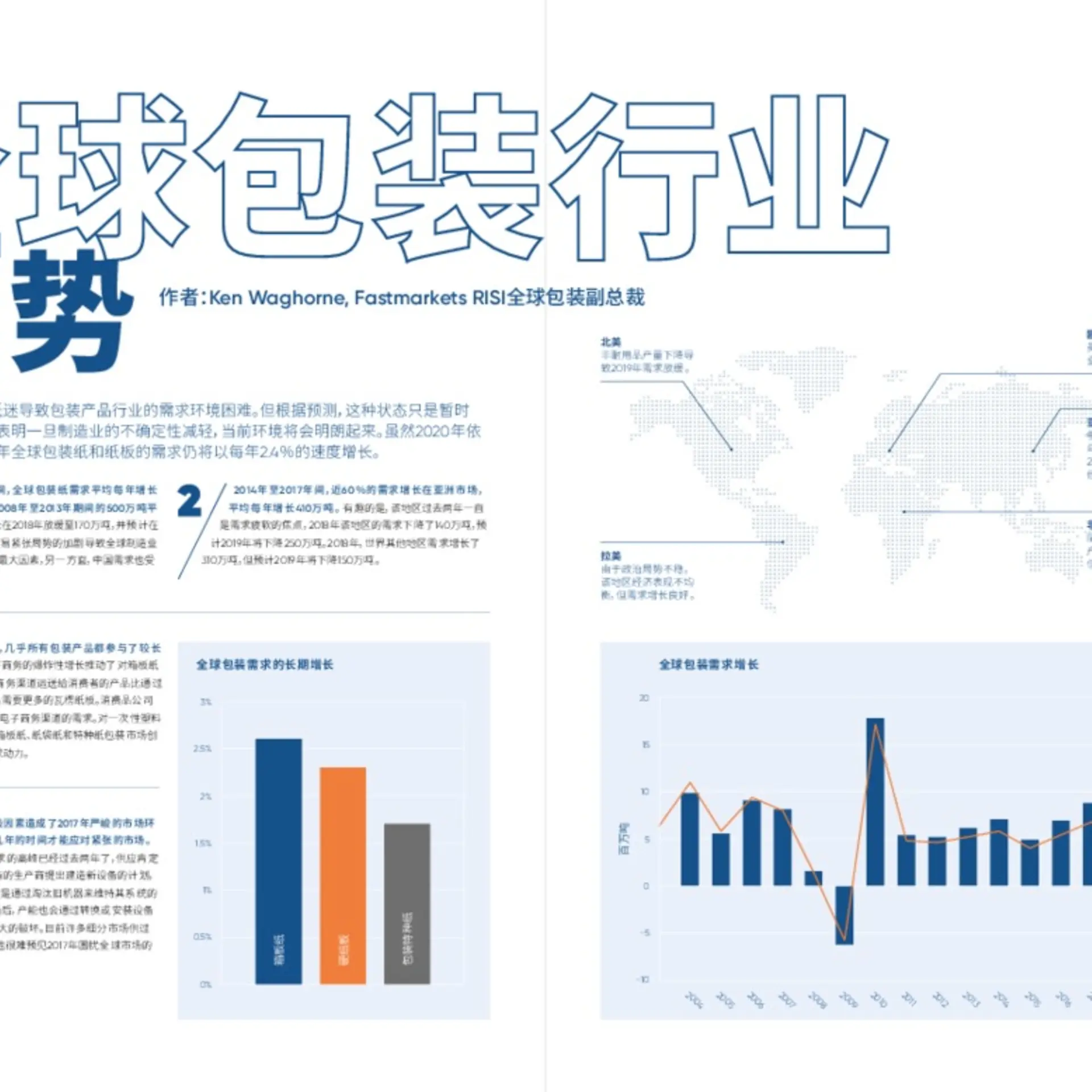 去年全球制造业活动低迷导致包装产品行业的需求环境困难。但根据预测,这种状态只是暂时的,目前存在多个因素表明一旦制造业的不确定性减轻,当前环境将会明朗起来。虽然2020年依然充满挑战,但未来五年全球包装纸和纸板的需求仍将以每年2.4%的速度增长。