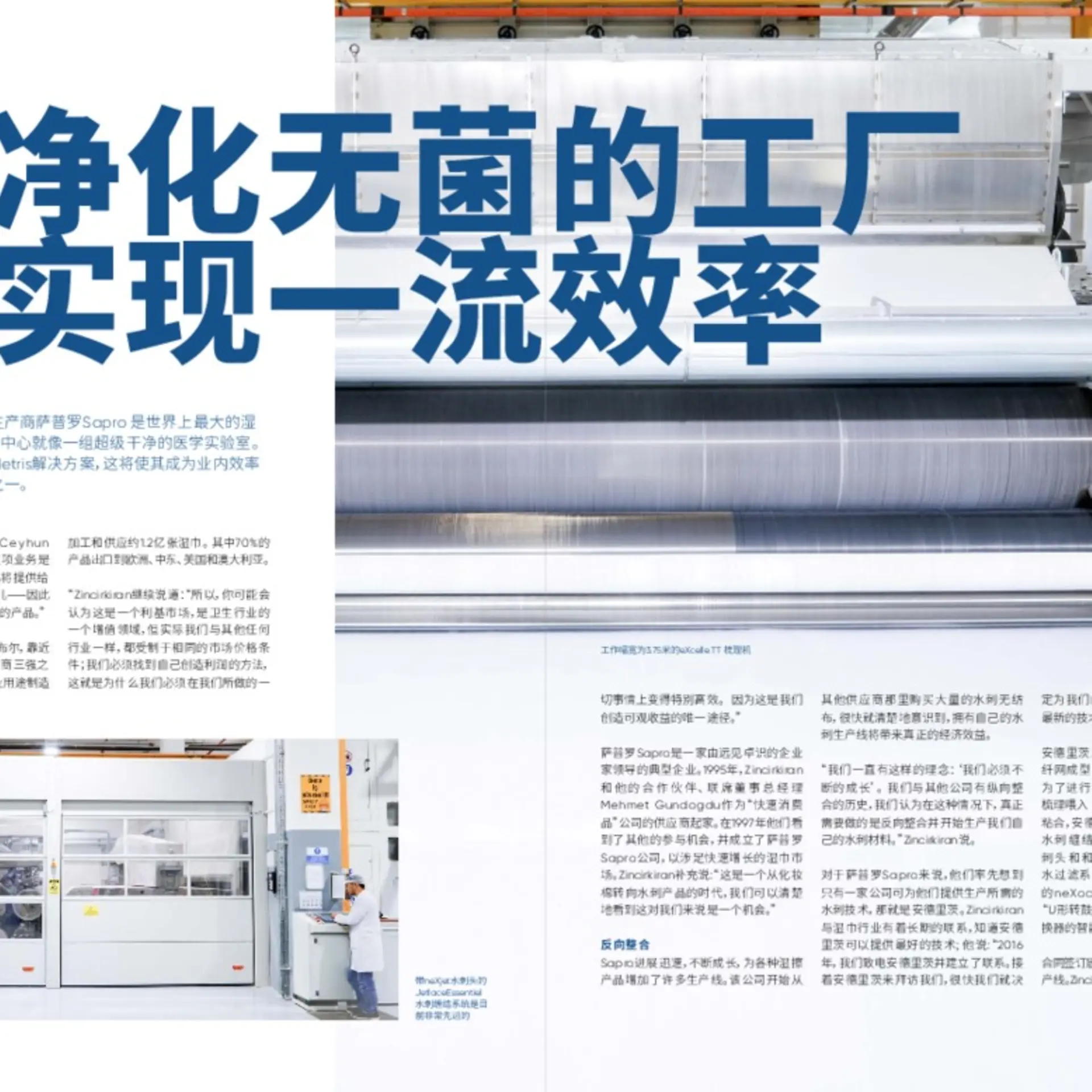 对于萨普罗Sapro来说,他们率先想到只有一家公司可为他们提供生产所需的水刺技术,那就是安德里茨。Zincirkiran与湿巾行业有着长期的联系,知道安德里茨可以提供最好的技术;他说:“2016年,我们致电安德里茨并建立了联系。接着安德里茨来拜访我们,很快我们就决定为我们的水刺生产安装最新的技术。”