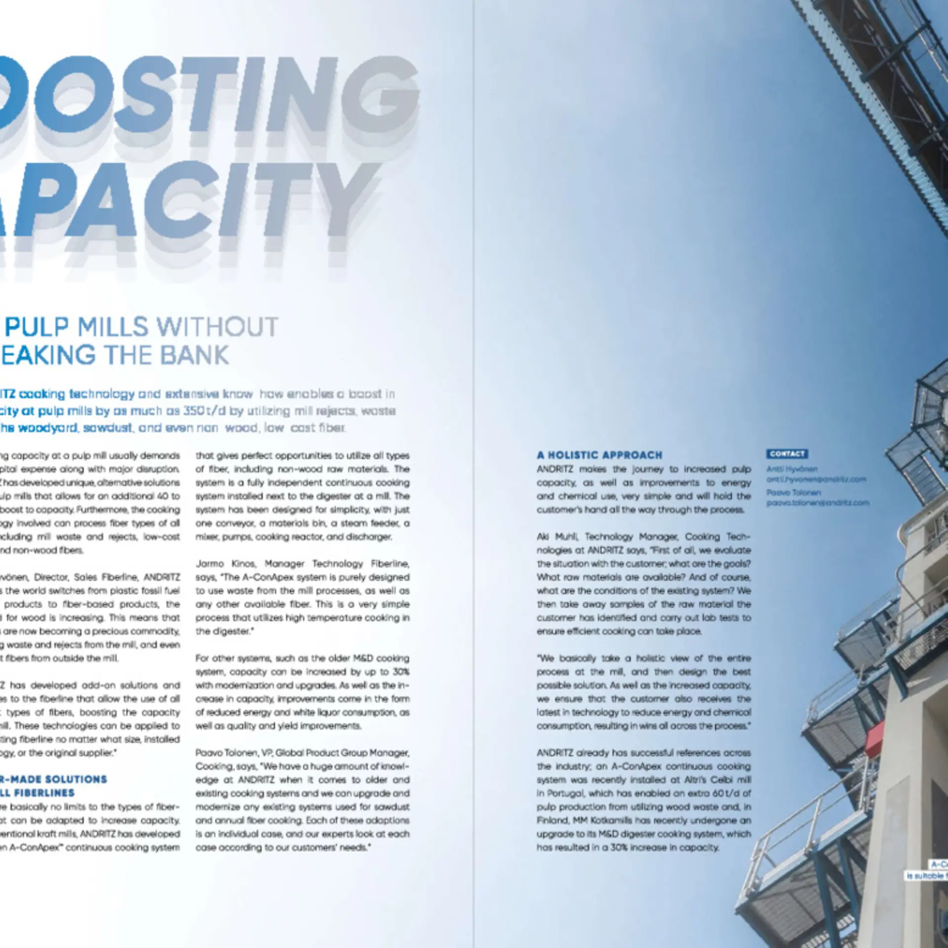 ANDRITZ makes the journey to increased pulp capacity, as well as improvements to energy and chemical use, very simple and will hold the customer’s hand all the way through the process.