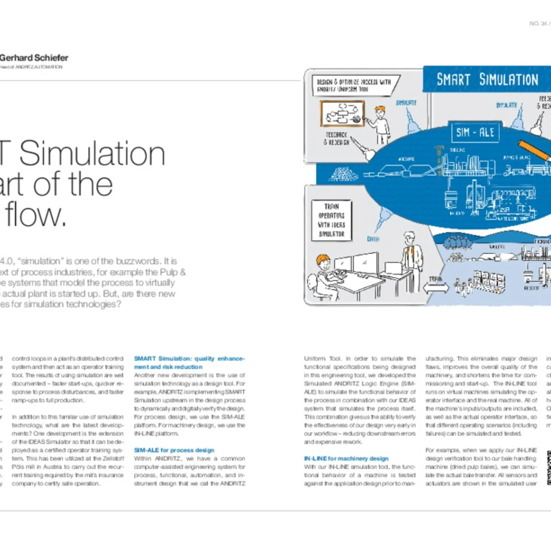 Another new development is the use of simulation technology as a design tool. For example, ANDRITZ is implementing SMART Simulation upstream in the design process to dynamically and digitally verify the design. For process design, we use the SIM-ALE platform. For machinery design, we use the IN-LINE platform.