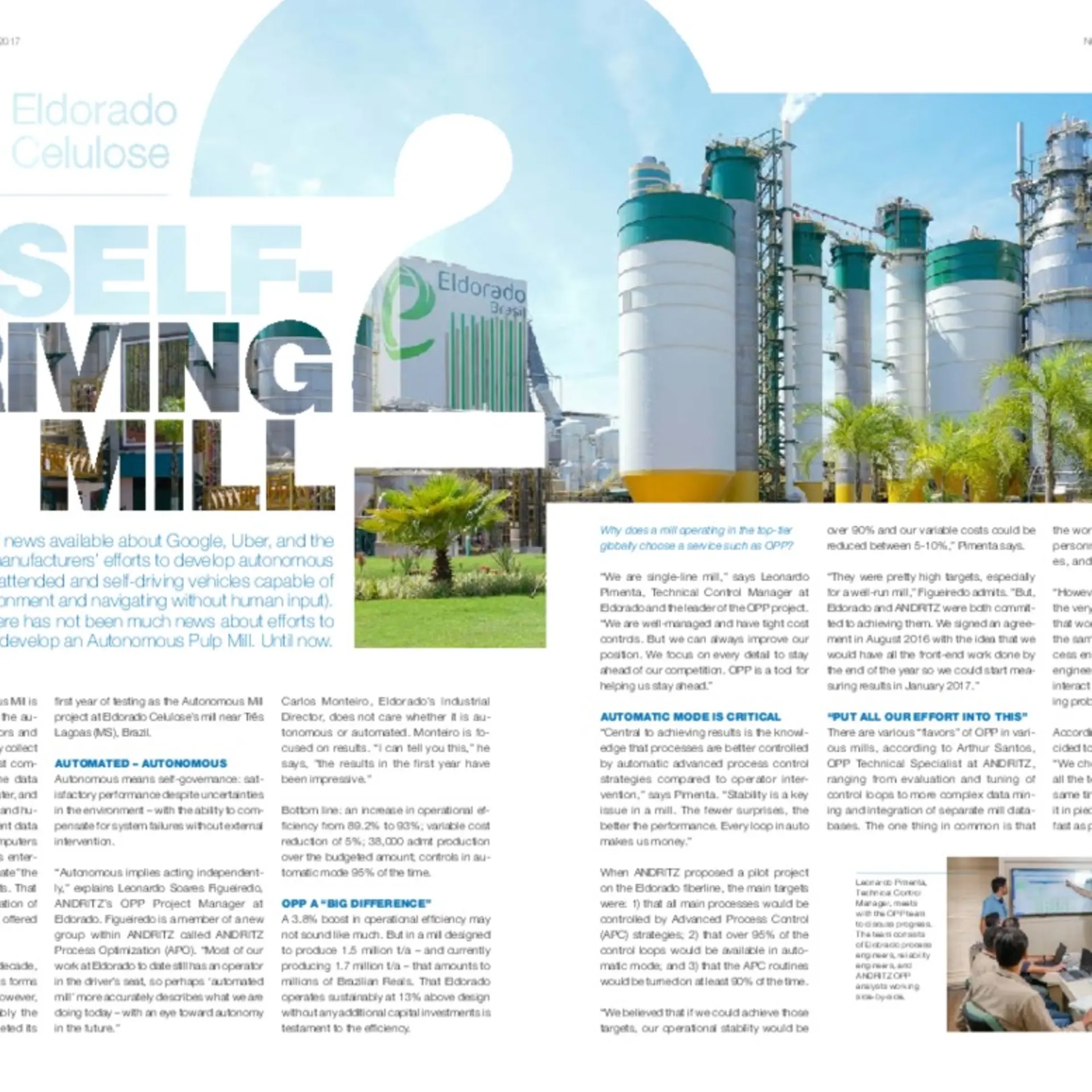 OPP has been around for over a decade, and is being implemented in various forms at about 50 mills around the world. However, the most ambitious – and arguably the most impressive – work just completed its first year of testing as the Autonomous Mill project at Eldorado Celulose’s mill near Três Lagoas (MS), Brazil.