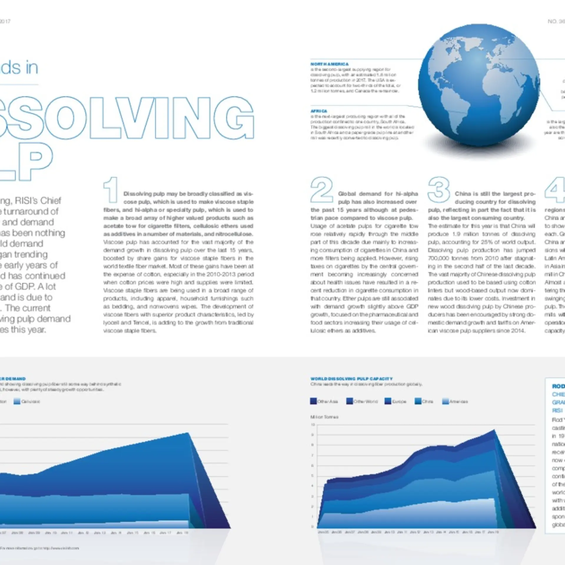 Viscose pulp has accounted for the vast majority of the demand growth in dissolving pulp over the last 15 years, boosted by share gains for viscose staple fibers in the world textile fiber market. Most of these gains have been at the expense of cotton, especially in the 2010-2013 period when cotton prices were high and supplies were limited. Viscose staple fibers are being used in a broad range of products, including apparel, household furnishings such as bedding, and nonwovens wipes. The development of viscose fibers with superior product characteristics, led by lyocell and Tencel, is adding to the growth from traditional viscose staple fibers.
