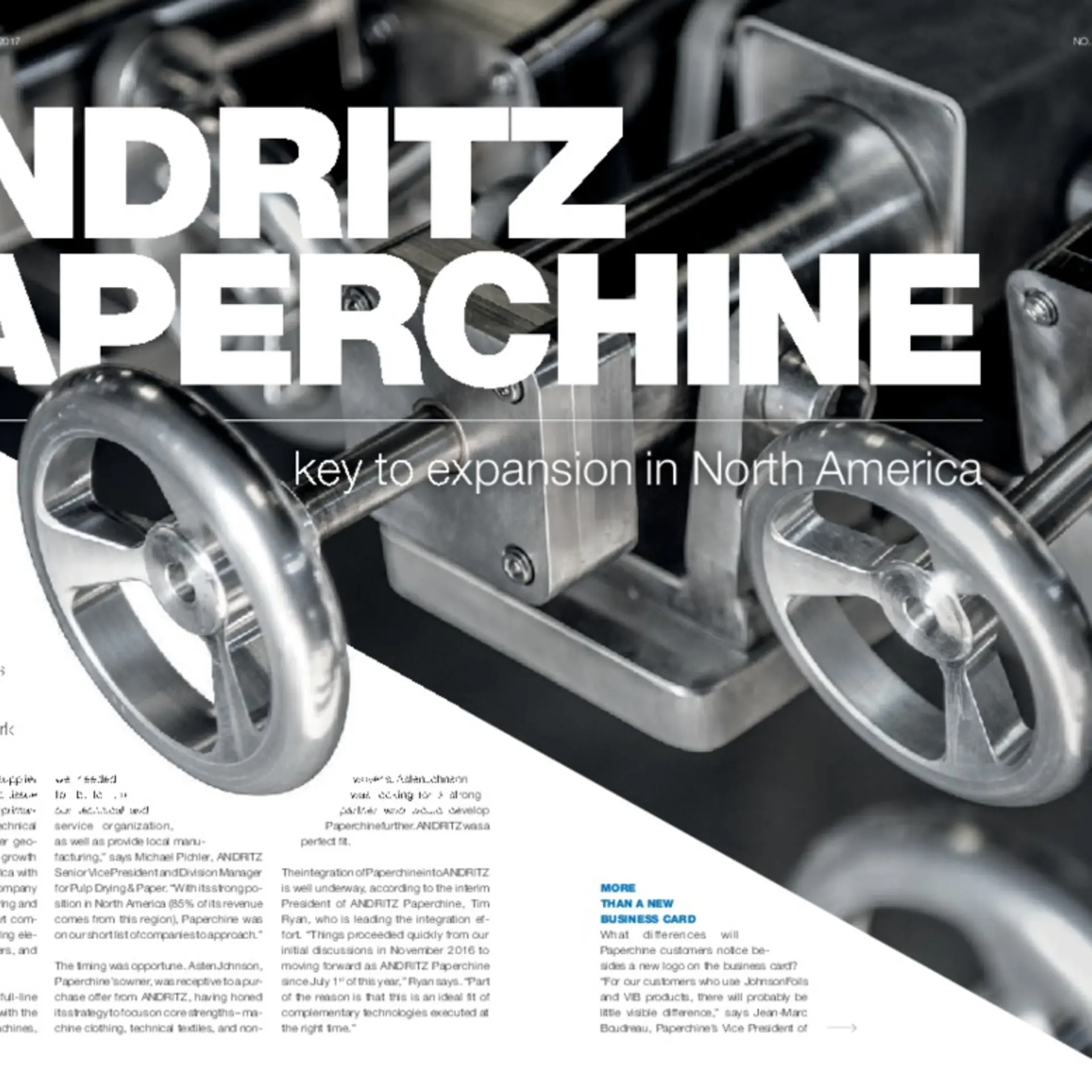 “To be seriously regarded as a full-line supplier in the region of the world with the largest installed base of paper machines, we needed to build up our technical and service organization, as well as provide local manufacturing,” says Michael Pichler, ANDRITZ Senior Vice President and Division Manager for Pulp Drying & Paper. “With its strong position in North America (85% of its revenue comes from this region), Paperchine was on our short list of companies to approach.”