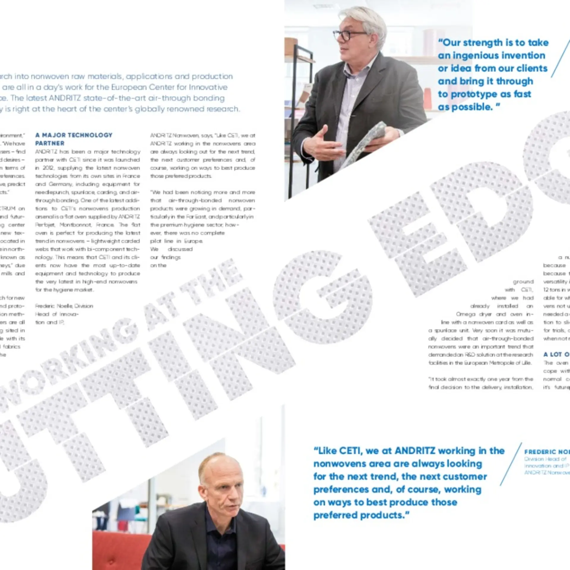 “At CETI, our core business is building, working on new materials, and prototyping products that brands can have faith in. Our strength is to take an ingenious invention or idea from our clients and bring it through to prototype as fast as possible. This is where our partnership with ANDRITZ is key for us; their experts really listen to what we want, as well as share their own knowledge. They then apply our needs and their own expertise, and the results speak for themselves.