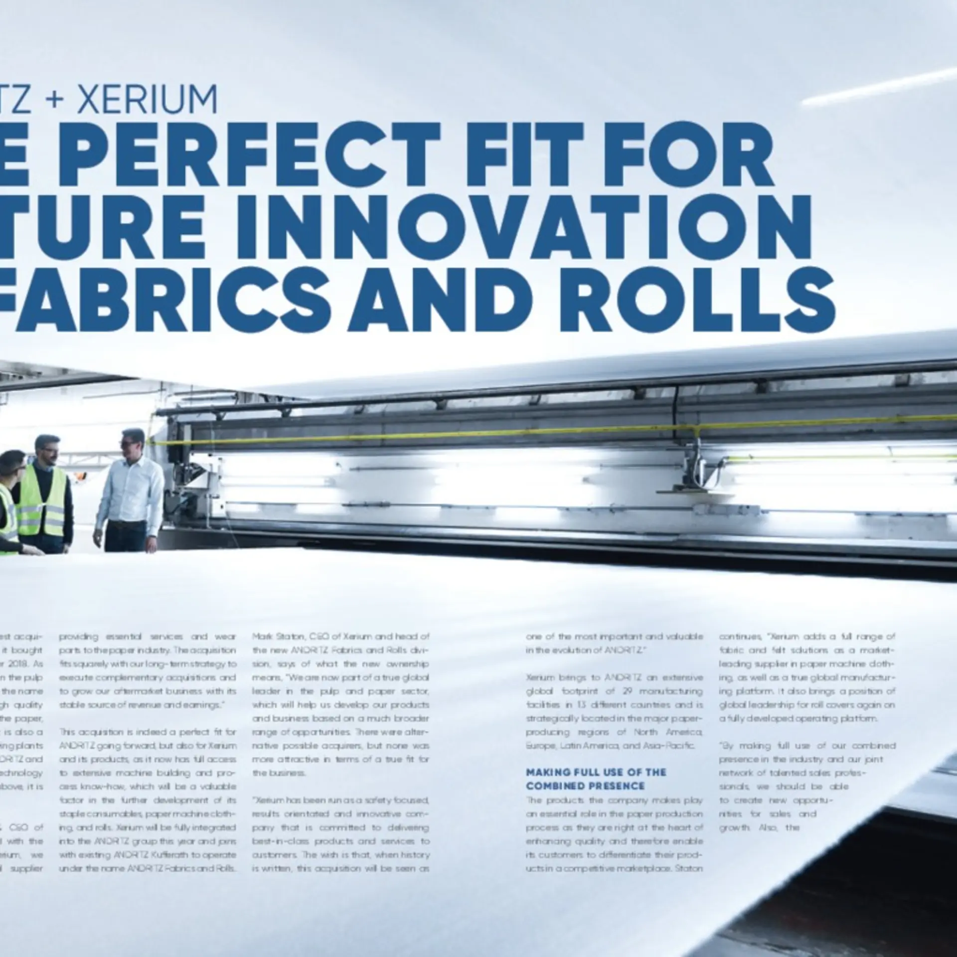 ANDRITZ made one of the largest acquisitions it has ever made when it bought Xerium Technologies in October 2018. As anyone working and operating in the pulp and paper industries will know, the name Xerium is synonymous with high quality consumable products used in the paper, board, and tissue industries. It is also a well-known supplier to pulp drying plants around the world. In fact, for ANDRITZ and its vast portfolio of superior technology supplying all those industries above, it is the perfect fit.