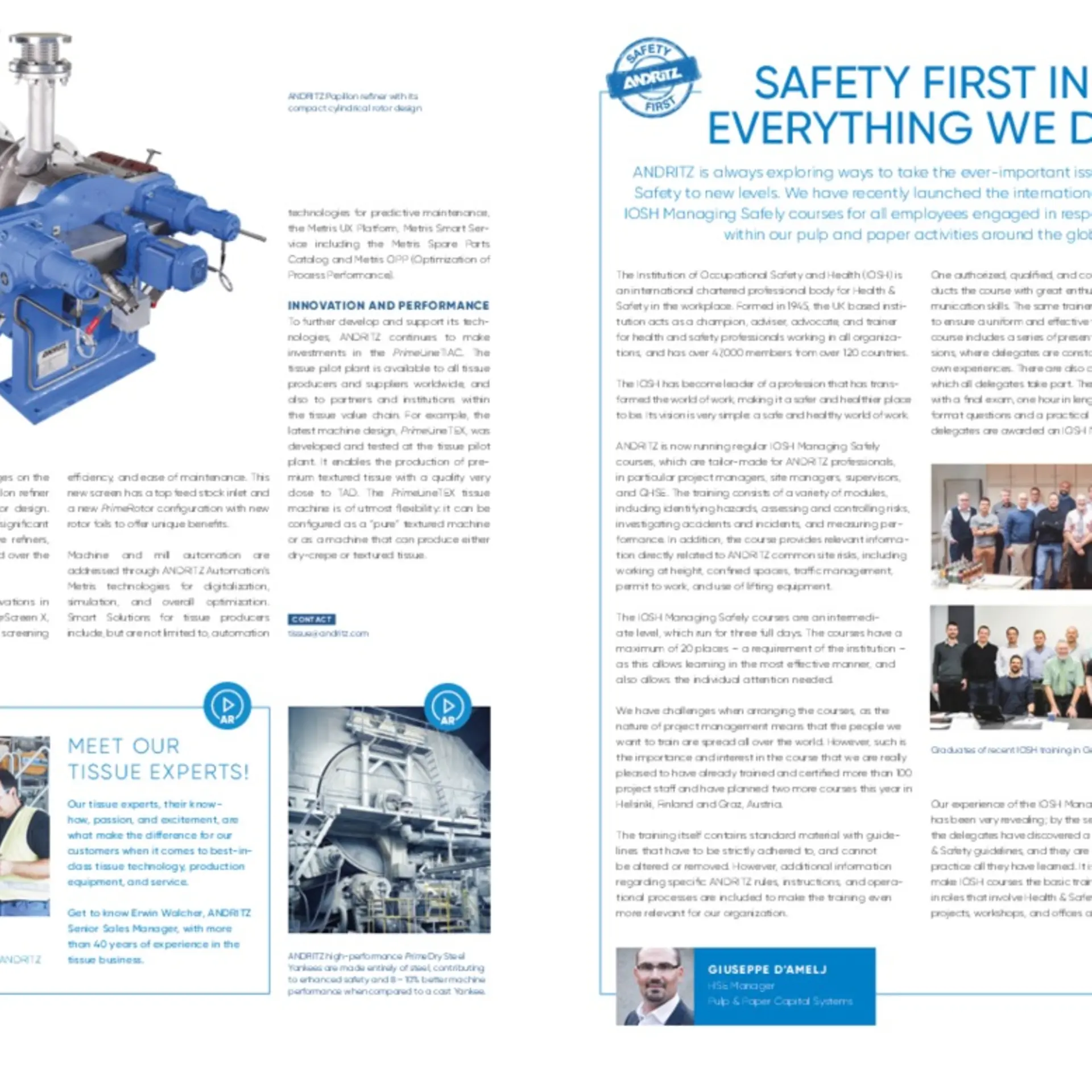 ANDRITZ is always exploring ways to take the ever-important issues of Health & Safety to new levels. We have recently launched the internationally recognized IOSH Managing Safely courses for all employees engaged in responsible positions within our pulp and paper activities around the globe.