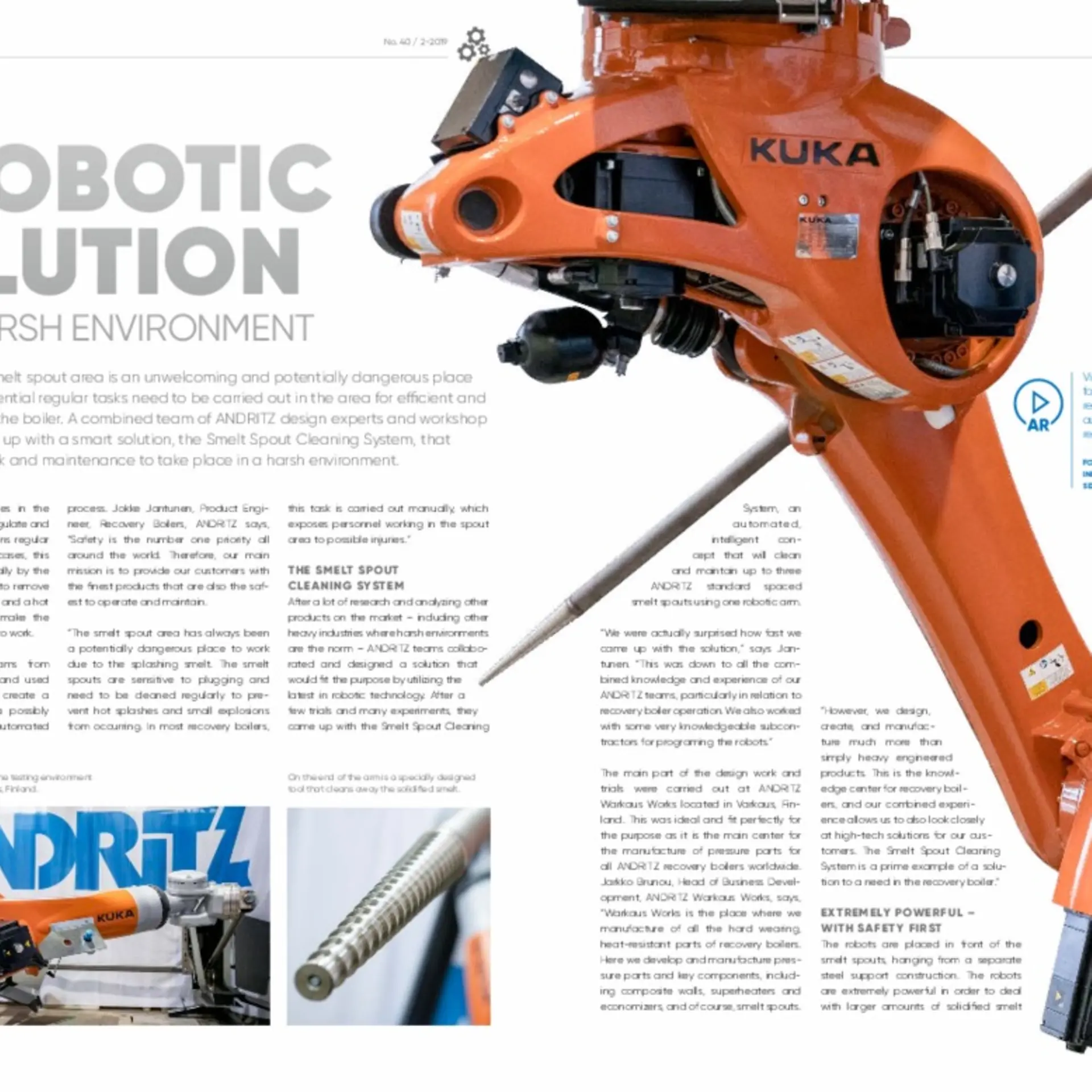 © Riku IsohellaThe robots themselves are supplied by the German company KUKA Robotics, but it’s the bespoke design, tailor-made components, and actions for recovery boilers that have brought to life the Smelt Spout Cleaning System.