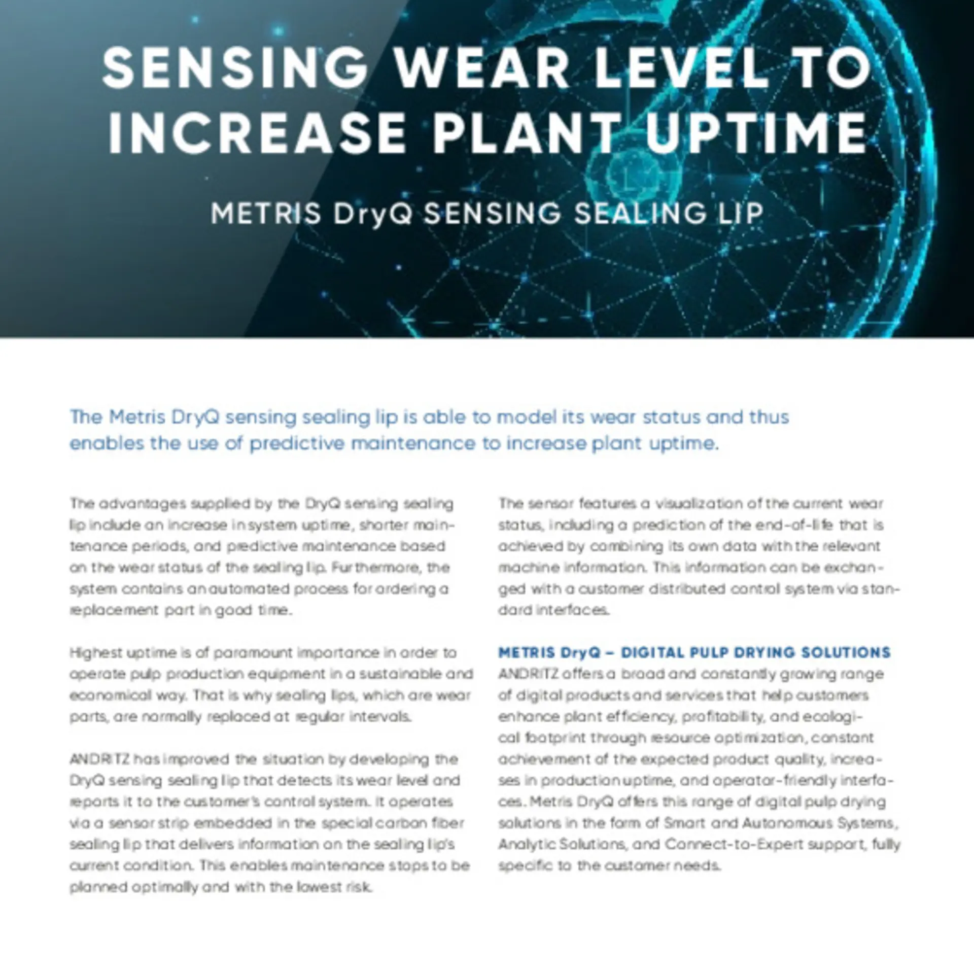 ANDRITZ has improved the situation by developing the DryQ Sensing Sealing Lip that detects its wear level and reports online via a dedicated measurement unit to the customer’s control system. A sensor strip is embedded in the special carbon fiber sealing lip to deliver information relating to the sealing lip’s current condition.