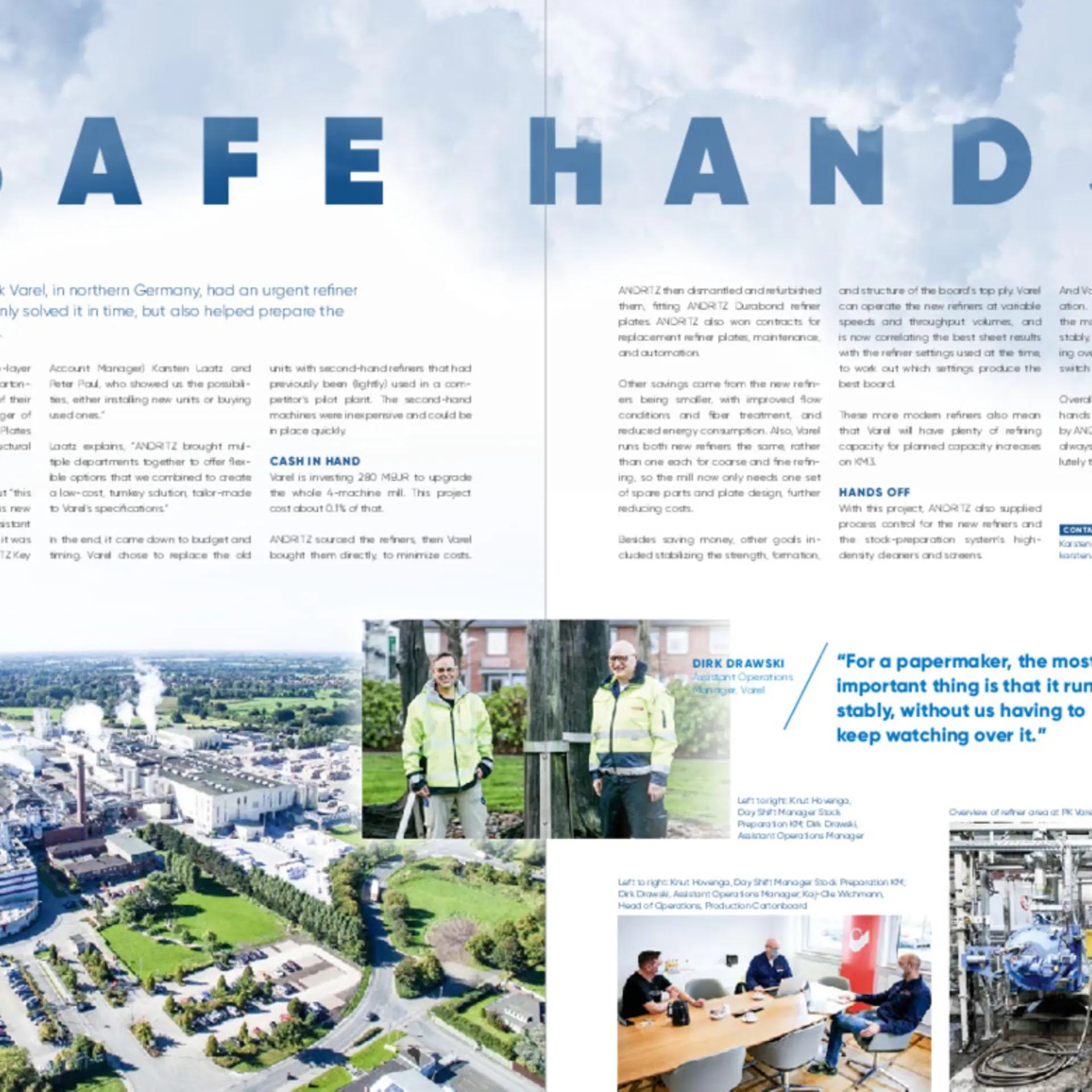 Overall, Drawski says, “We are in safe hands and we are very well taken care of by ANDRITZ. When we need help, ANDRITZ always has time to listen to us. We absolutely trust them.”