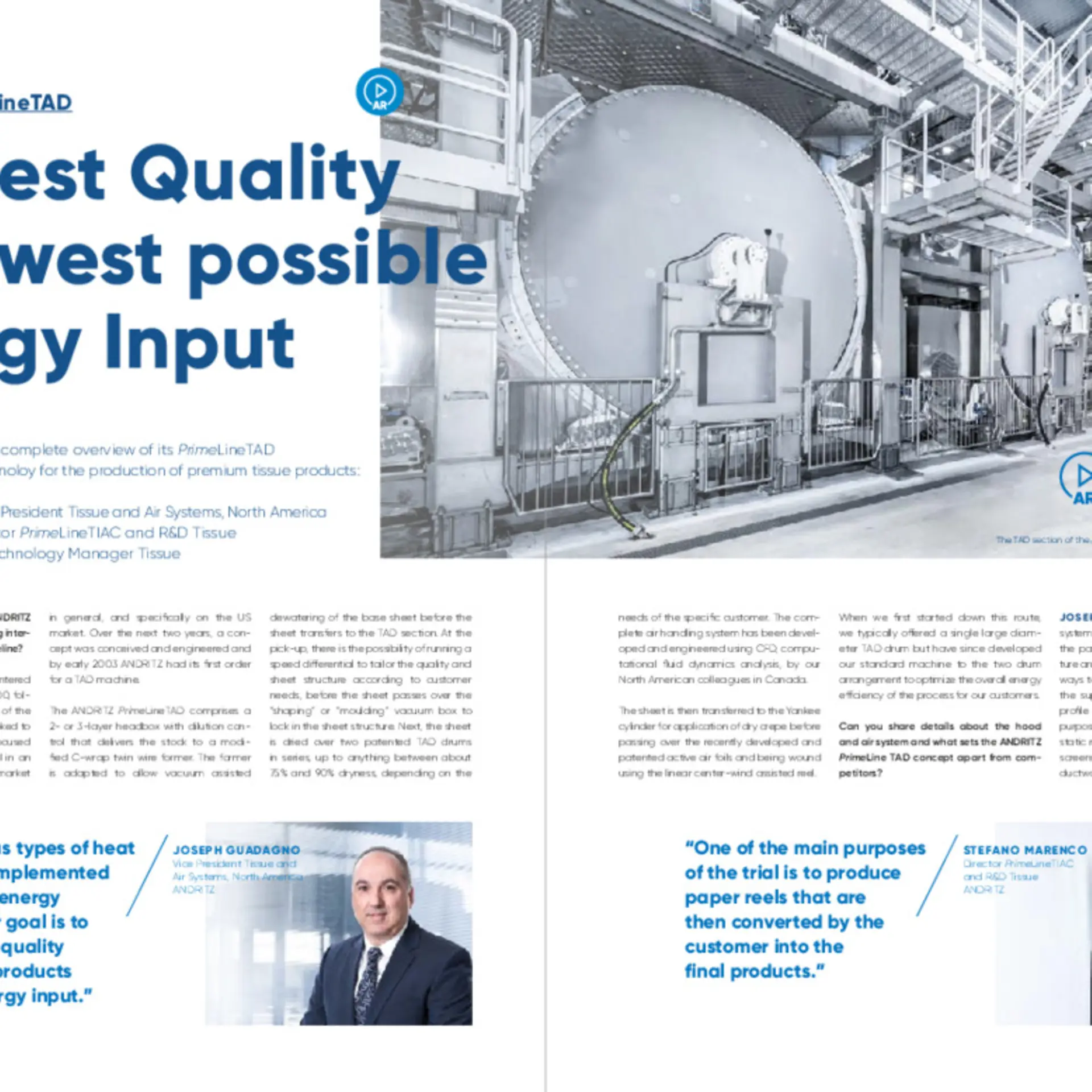 Historically, TAD was made with a dryness after the TAD of around 95% – one of the reasons that led to the development of the UCTAD, or Un-Creped TAD, process. The Yankee, a traditional part of any Tissue Machine, was only really a carrier, allowing a percentage of dry crepe to be put into the end product. Today, depending on the technology being used and the manufacturer, the dryness after the TAD can be significantly lower. In fact, ANDRITZ and its customers are constantly making efforts to push these boundaries and are evolving with the chemistry suppliers to allow higher moisture to the Yankee. This movement of the drying balance is a major step in reducing the energy demand for drying.